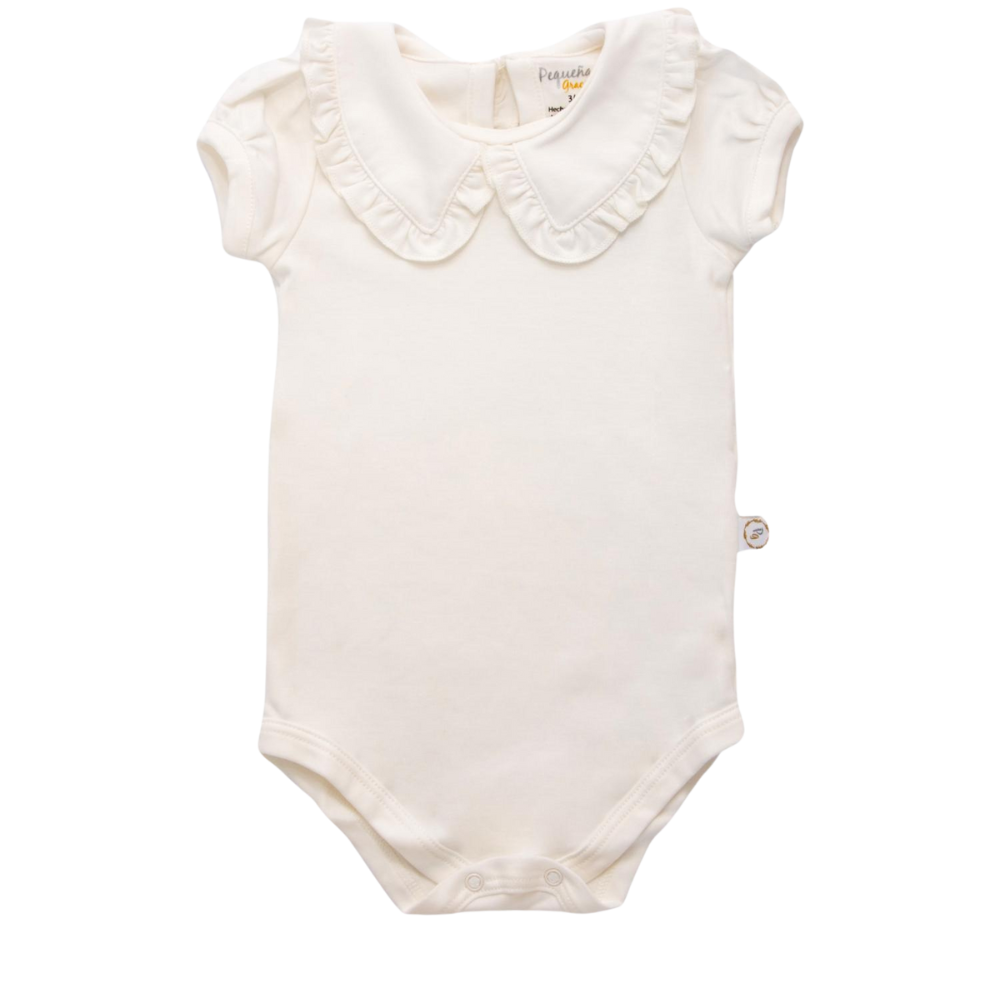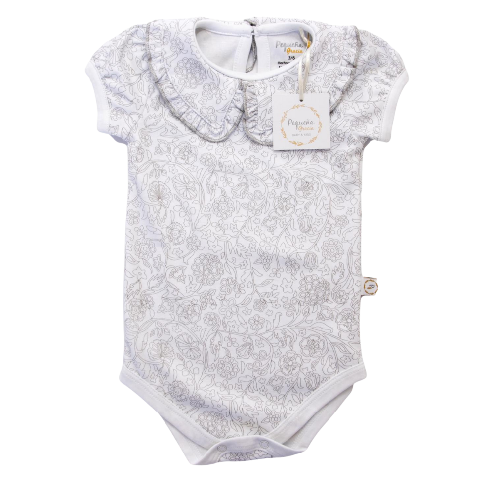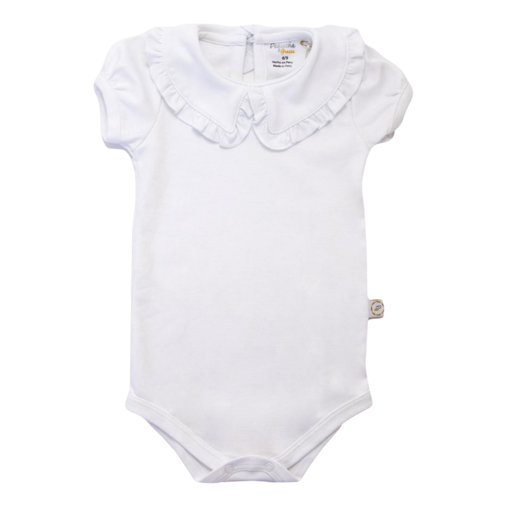 Una prenda esencial, delicada y perfecta para crear looks dulces y cómodos. Con manga corta y un diseño versátil, este body es perfecto como complemento. Su cuello con delicados detalles lo convierte en un prenda muy femenina.