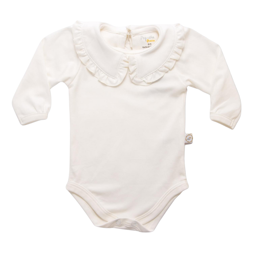 Una prenda esencial, delicada y perfecta para crear looks dulces y cómodos. Con manga larga y un diseño versátil, este body es perfecto como complemento. Su cuello con delicados detalles lo convierte en un prenda muy femenina.