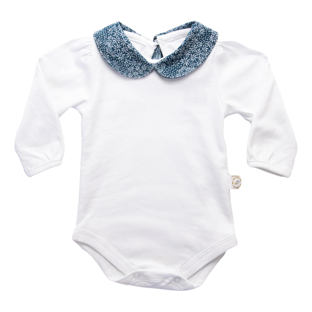 Suavidad y encanto para tu Pequeña, su cuello floral aporta un toque romántico y encantador, perfecto para complementar cualquier look. Con manga larga y un calce cómodo este body es una pieza versátil que no puede faltar en el clóset de tu pequeña.